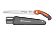 The Husqvarna Fixed Saw 300 ST has a total length of 400 mm, and belongs to the new generation of Husqvarna saws. The rigid, straight saw blade with impulse-hardened precision toothing features triple grinding. This means particularly high sawing performance, quiet running, effort-saving sawing and a very long lifetime. The particularly smooth pulling cut is ideal for fresh and dry wood. Practical: the saw blade is easy to replace. Rust has no chance to attack. In addition to the eyelet for hanging up the saw, this product has a blade cover so that it can be stored safely and in a handy place. During sawing, a stop at the end of the handle prevents you from slipping. This has proven particularly useful during pulling movements, and assists you in making smooth progress. Thanks to the ergonomics, slightly angled handle shape and soft handle parts, this saw lies comfortably and safely in your hand.